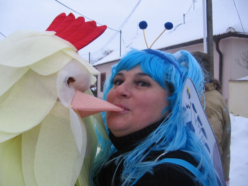 Motýl kouše slepici do zobáku... nebo pokus o plibek?