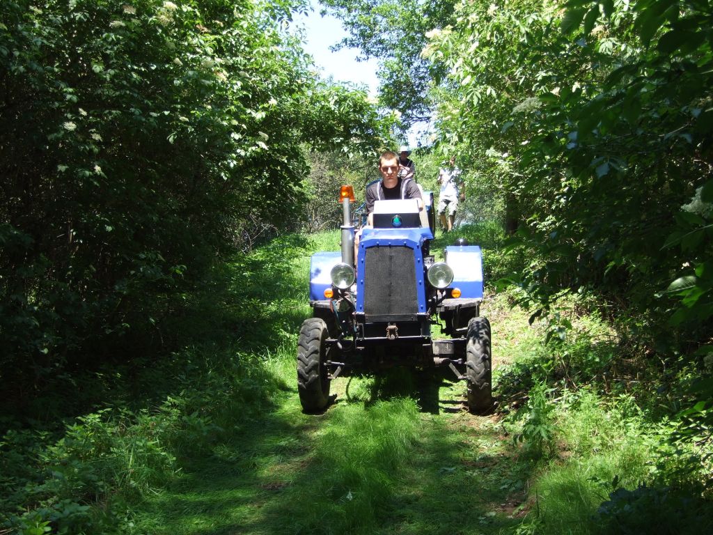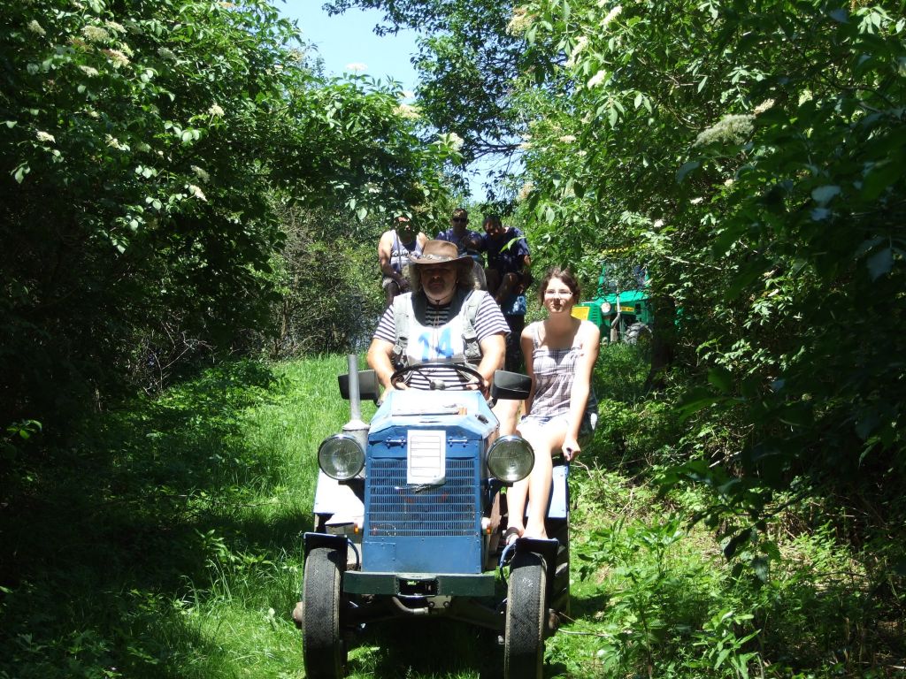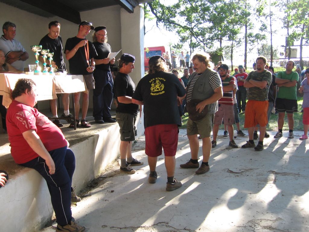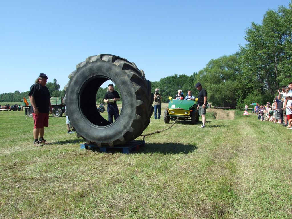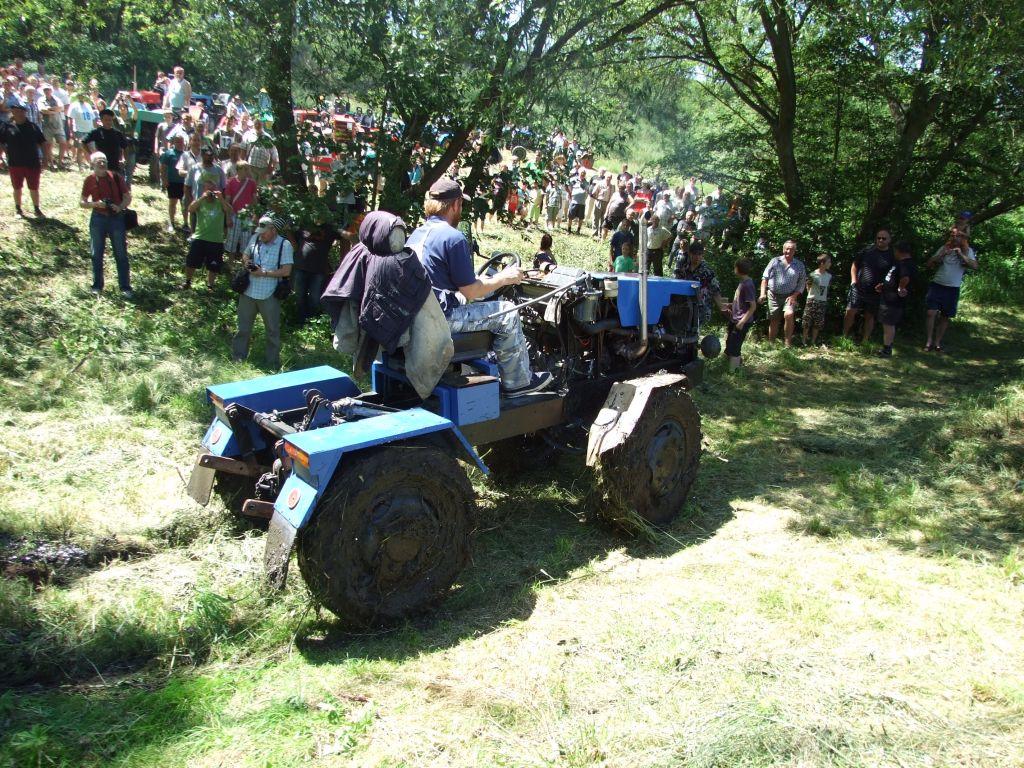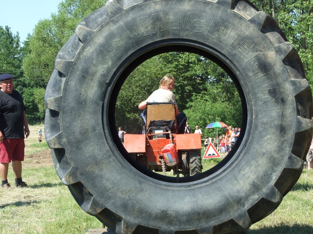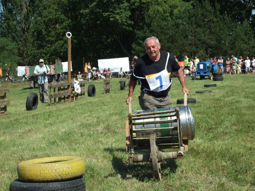 Součástí další disciplíny bylo vezení sudu na trakači