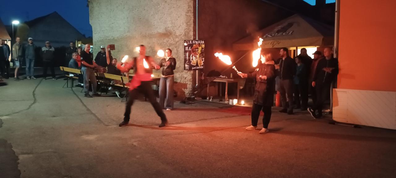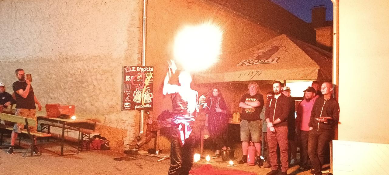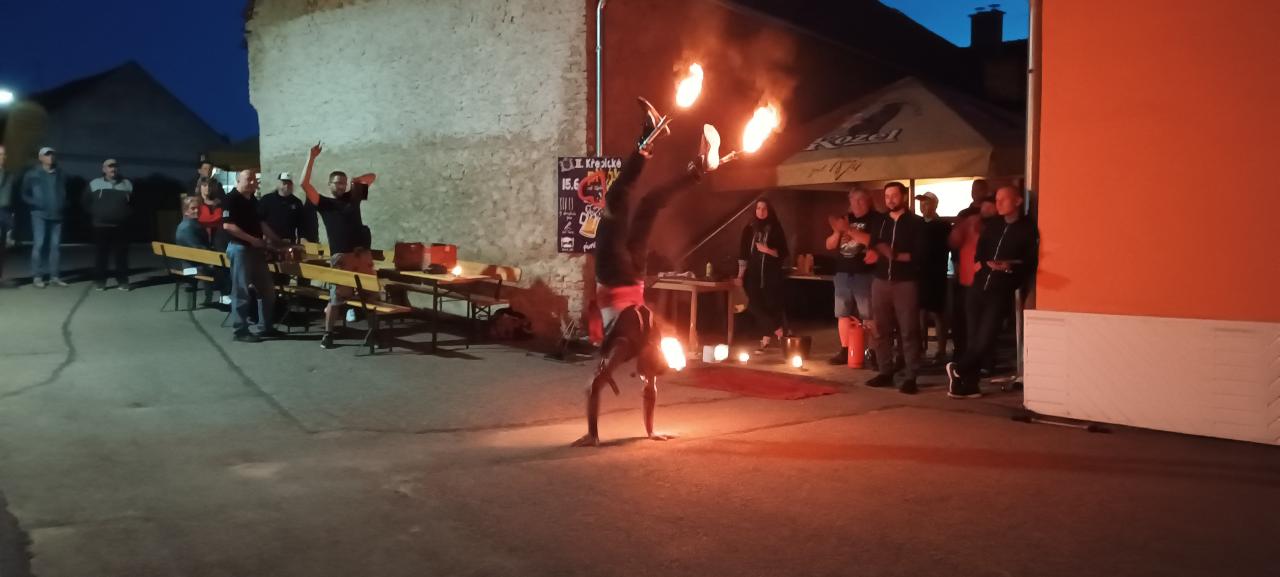 Večerní ohňová show kejklíře Vlasty